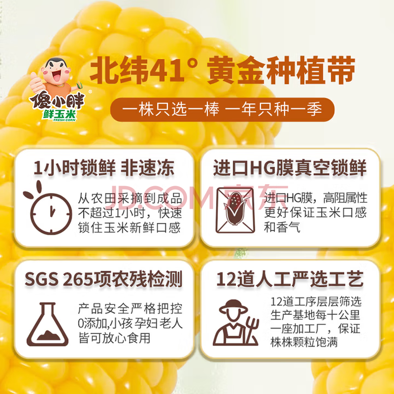 商品相册:傻小胖 甜糯玉米 真空 早餐粗粮 微波即食 礼盒 黄糯10支装2kg/箱第