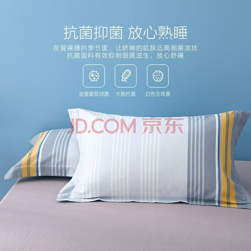 商品相册:水星家纺枕套全棉枕头套100%纯棉抑菌枕头罩一对装双人家用48x74cm第