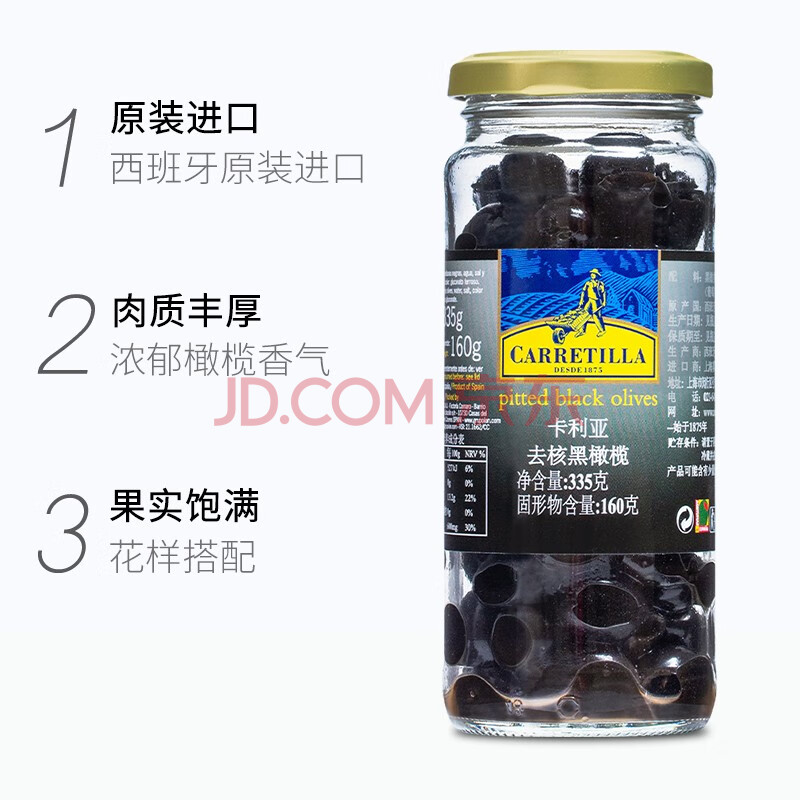 商品相册:卡利亚西班牙进口 去核黑橄榄 意面披萨西餐鸡尾酒沙拉配料罐头335g第
