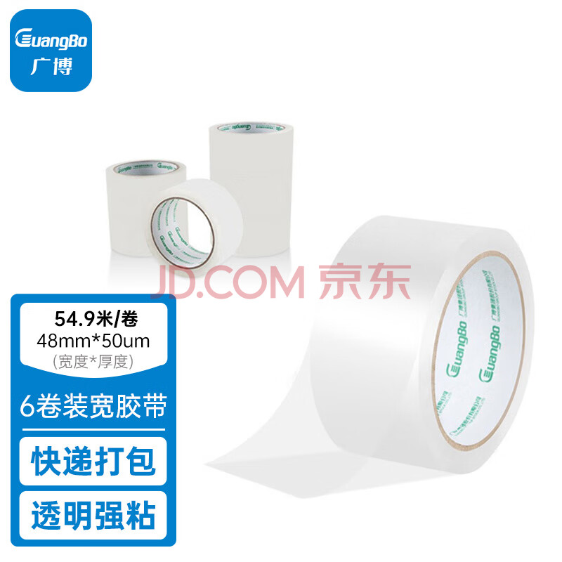 商品相册:广博(GuangBo)防风6卷装48mm*60y*50μm 54.9米/卷透明封箱胶带胶布办公用品FX-20第