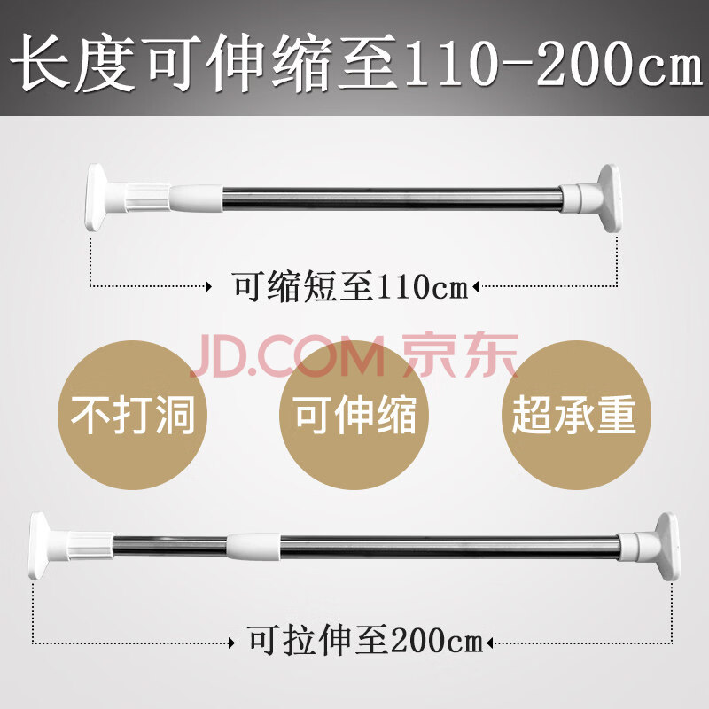 商品相册:美居客伸缩晾衣杆浴帘杆免打孔不锈钢窗帘杆衣柜挂衣杆阳台横杆1.1-2M第