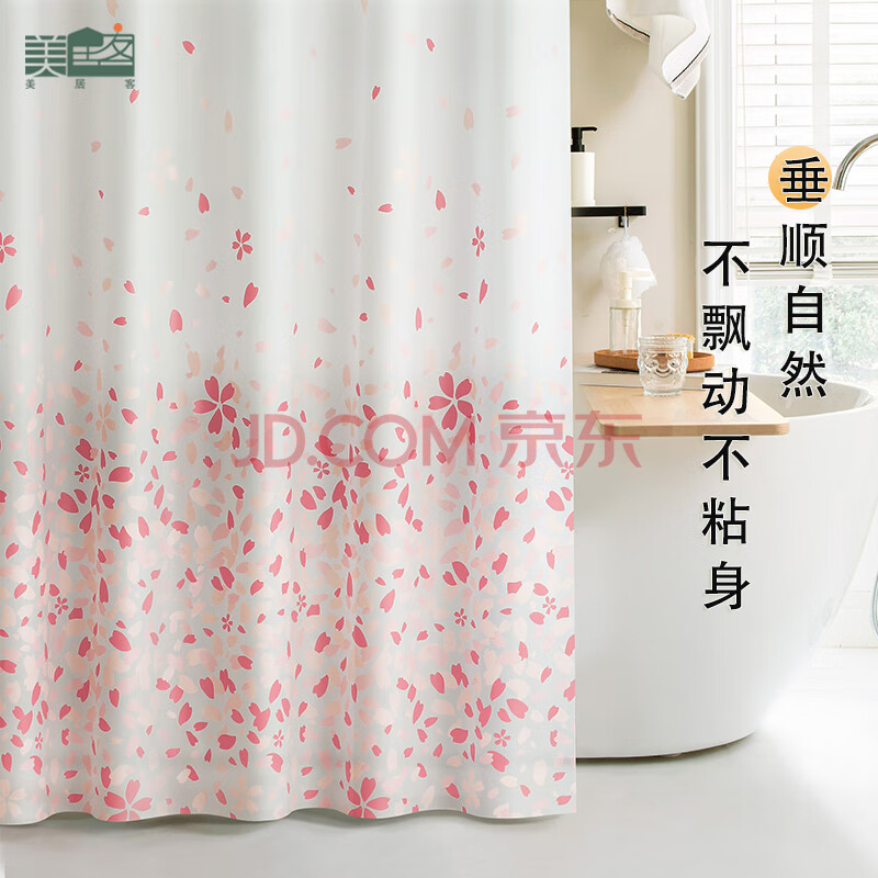 商品相册:美居客 浴帘 免打孔防水浴室帘洗澡间淋浴房隔断帘180*180CM(日式樱花)第