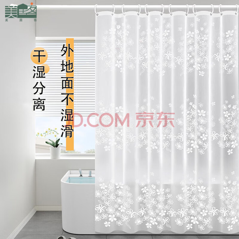 商品相册:美居客 浴帘 PEVA浴帘布窗帘隔断帘防水不透干湿分离1.8*2.0M(白色花蔓)第