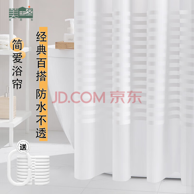 商品相册:美居客浴帘简爱加厚PEVA浴室隔断遮挡帘防水布挂帘洗澡淋浴帘1.2*1.8M第