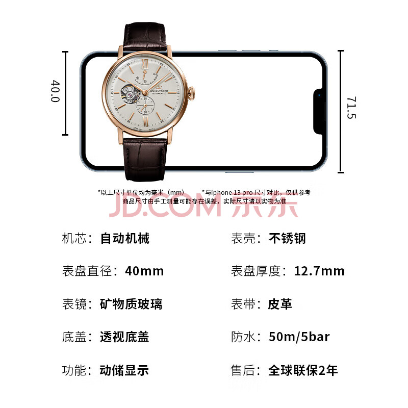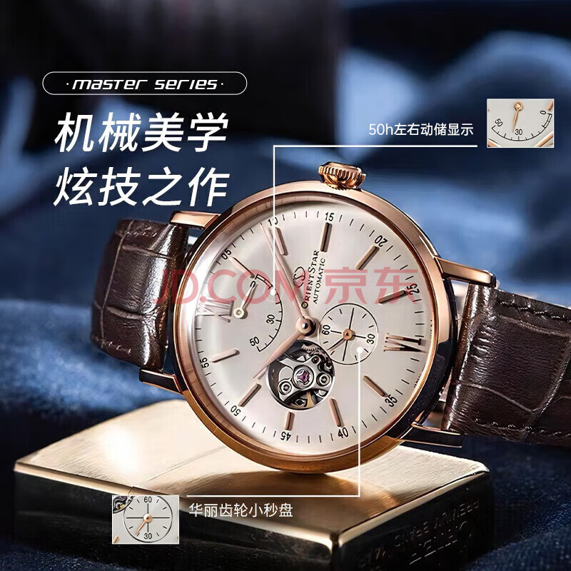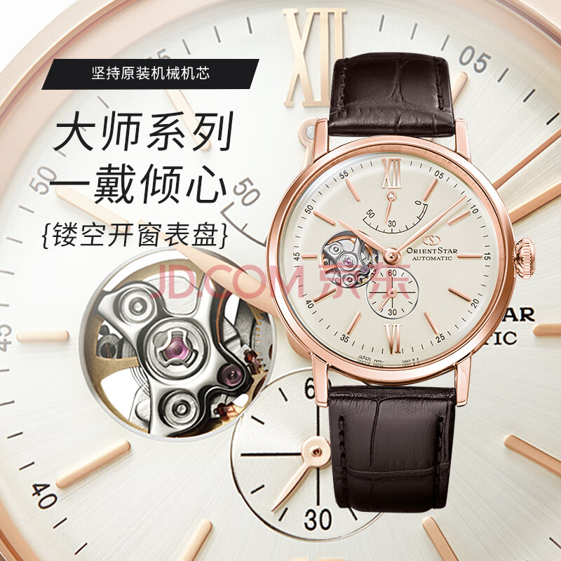 商品相册:ORIENT日本东方双狮手表全自动机械表男东方星开芯透窗小金表RE-AV0001S第