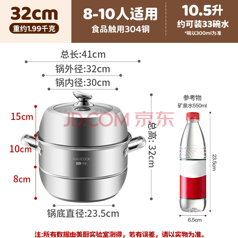 商品相册:美厨(maxcook)蒸锅 304不锈钢32cm二层蒸锅 加厚复底蒸锅 燃气电磁炉通用第