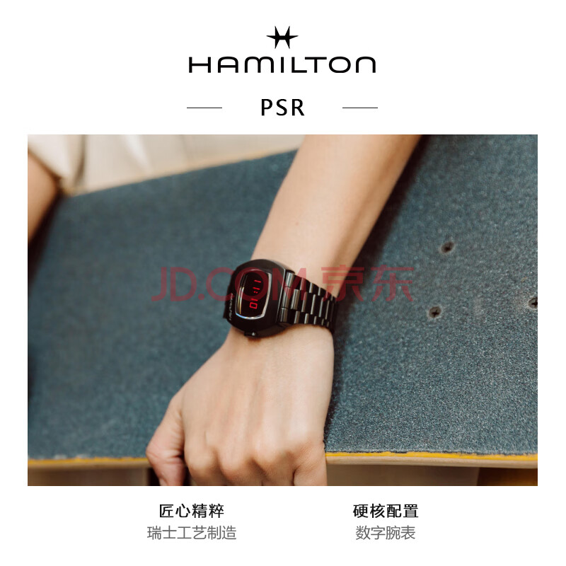 商品相册:汉米尔顿(Hamilton)PSR数字石英表红字小黑块手镯式钢链腕表男士石英手表男款礼物第