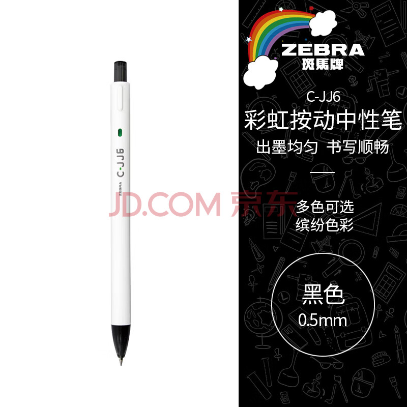 商品相册:斑马牌(ZEBRA)【热门商品】虹彩按动中性笔 0.5mm子弹头签字笔学生绘画标注填色手账笔水笔 C-JJ6黑色 单支装第