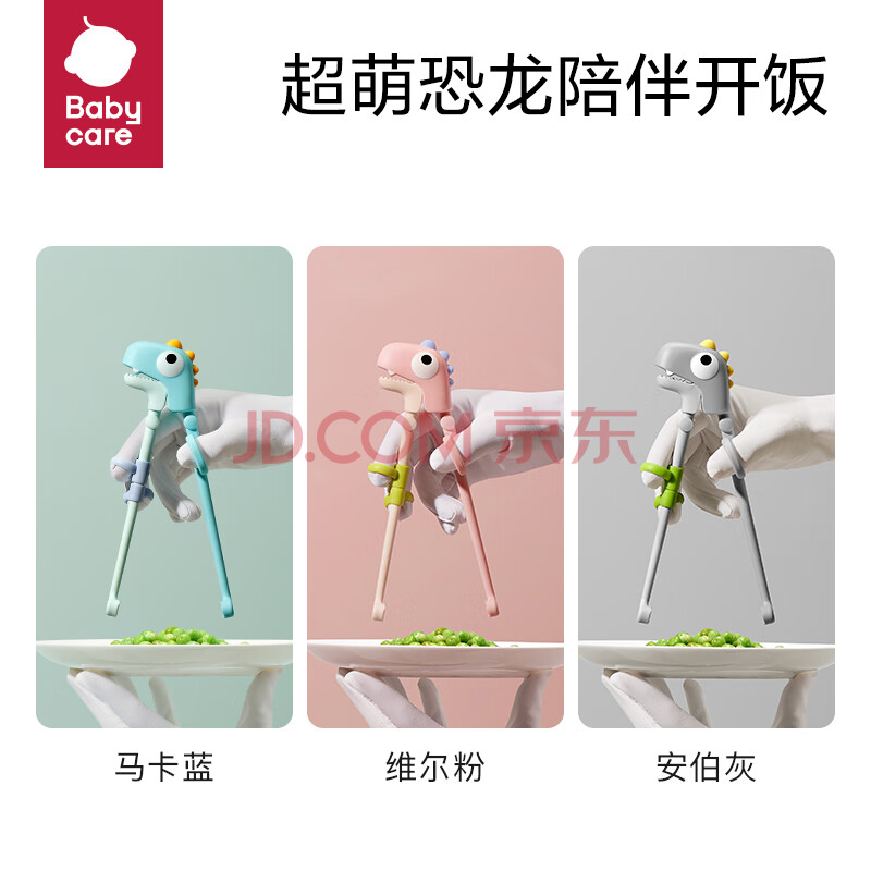 商品相册:babycare儿童筷子宝宝硅胶训练筷婴幼儿餐具专用筷 恐龙练习筷-马卡蓝第