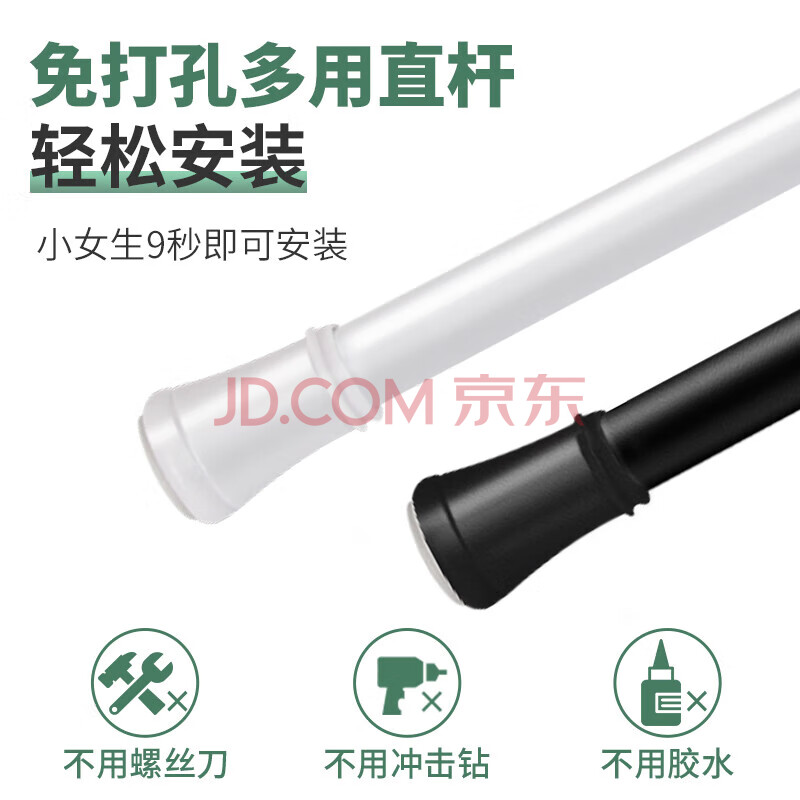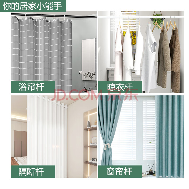 商品相册:美居客浴帘杆免打孔伸缩杆超细门帘窗帘杆衣柜撑杆90-160cm(迷你白)第