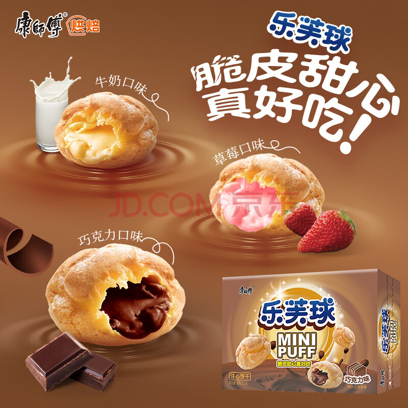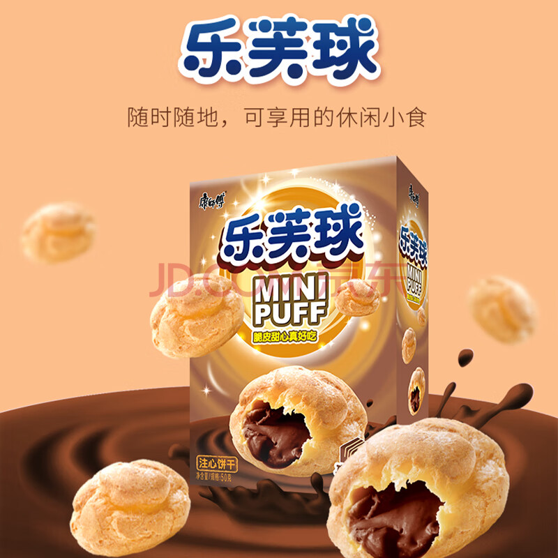 商品相册:康师傅 乐芙球巧克力味50g 饼干 休闲零食糕点泡芙蛋糕 早餐下午茶第