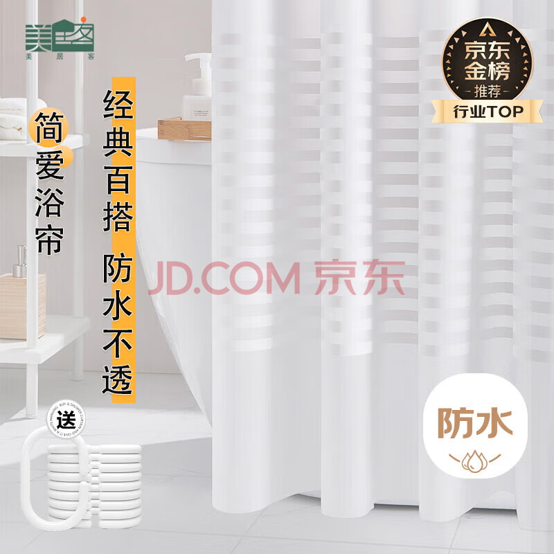 商品相册:美居客 浴帘 简爱加厚PEVA浴室帘防水不透免打孔卫生间窗帘隔断帘1.8*2M第