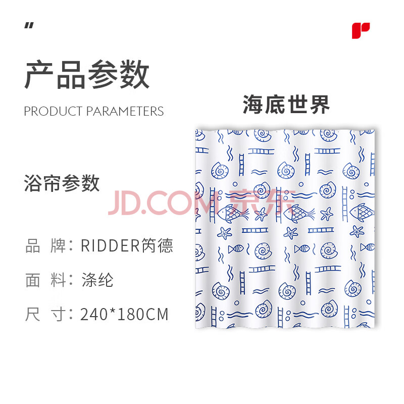 商品相册:RIDDER德国进口浴帘防水不霉卫生间洗澡淋浴隔断海底世界加宽240*180cm第
