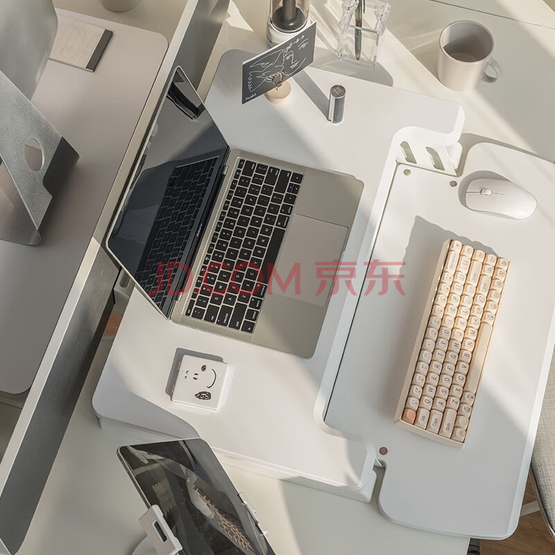 商品相册:Brateck北弧 升降台 升降电脑桌 升降桌小型 站立办公升降台 显示器增高架 电脑支架小仙桌 石英白第1张/共6
