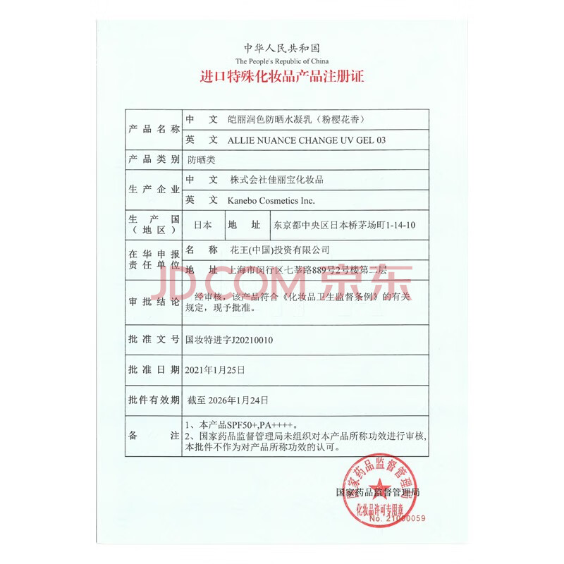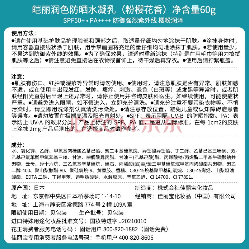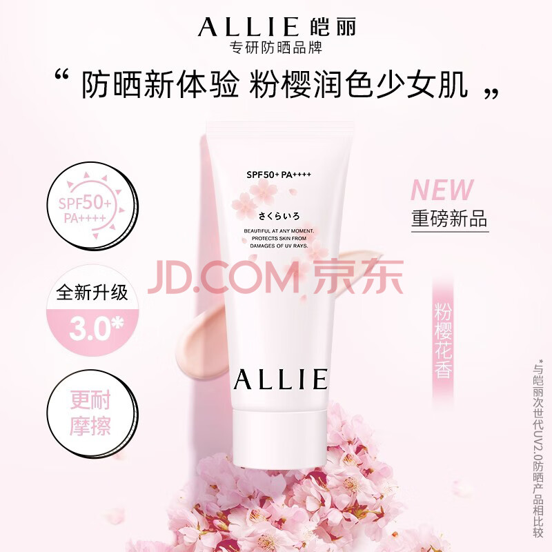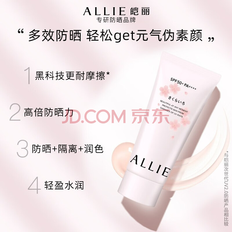 商品相册:皑丽(ALLIE)嘉娜宝防晒霜面部户外通勤礼物润色提亮妆前乳SPF50+粉樱花香60g第