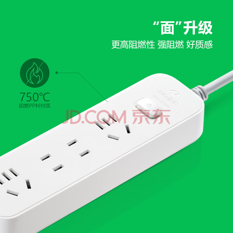 商品相册:公牛(BULL)插座/插线板/插排/排插/接线板/宿舍家用桌面拖线板 3C认证 4位总控开关全长5米 GN-B3220 第