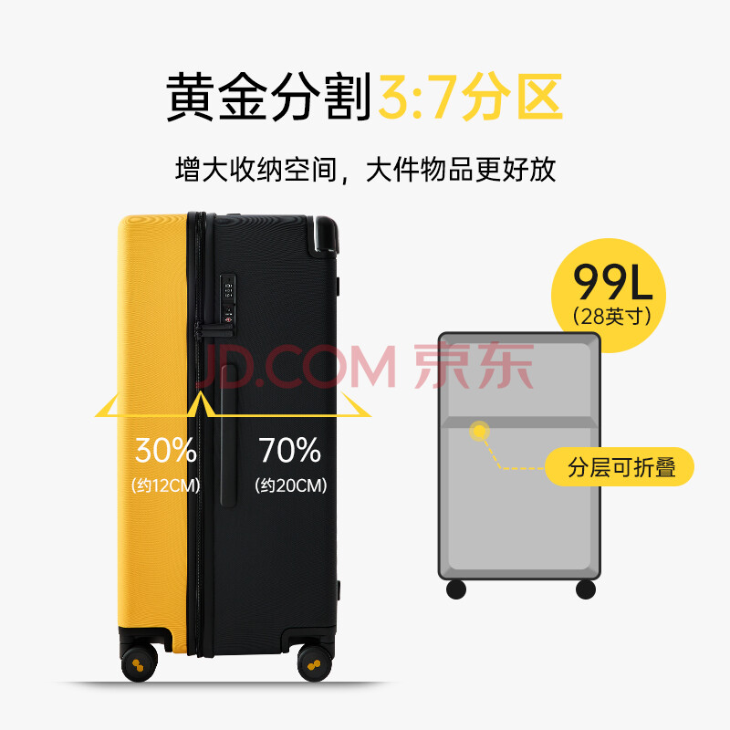 商品相册:地平线8号(LEVEL8)行李箱男女密码拉杆箱 大旅行家大容量26英寸宽拉杆PC箱 黄黑拼色第