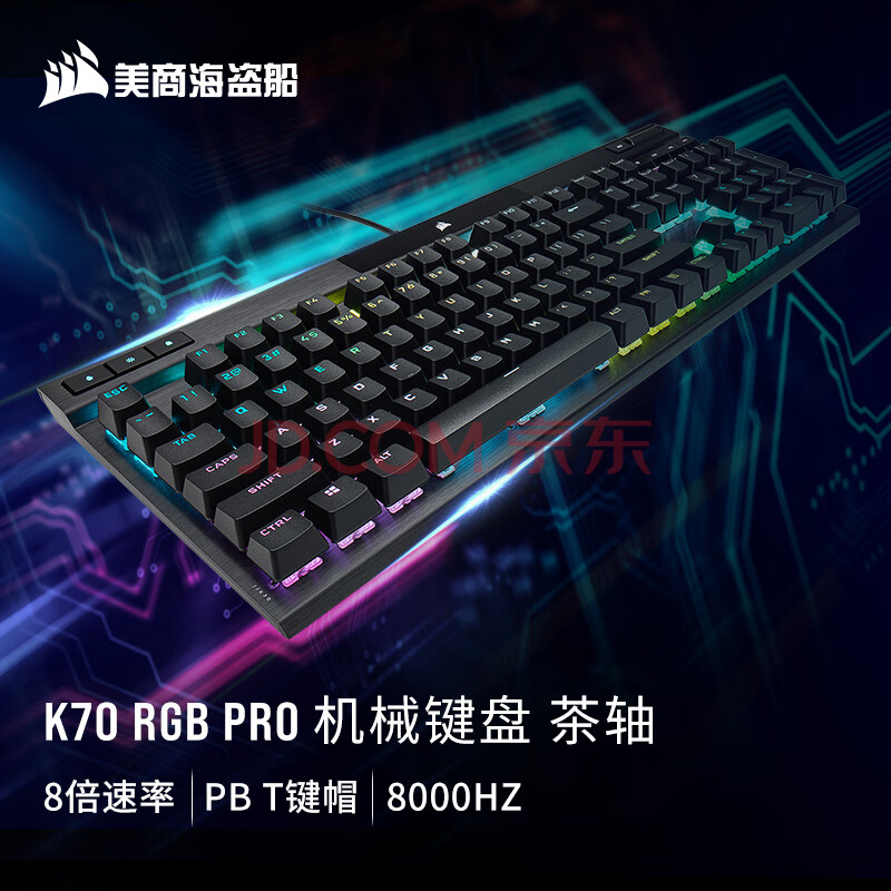 商品相册:美商海盗船(USCORSAIR) K70 RGB PRO 机械键盘 游戏键盘 全尺寸 8000Hz 竞技模式 铝框体 黑色 樱桃茶轴第