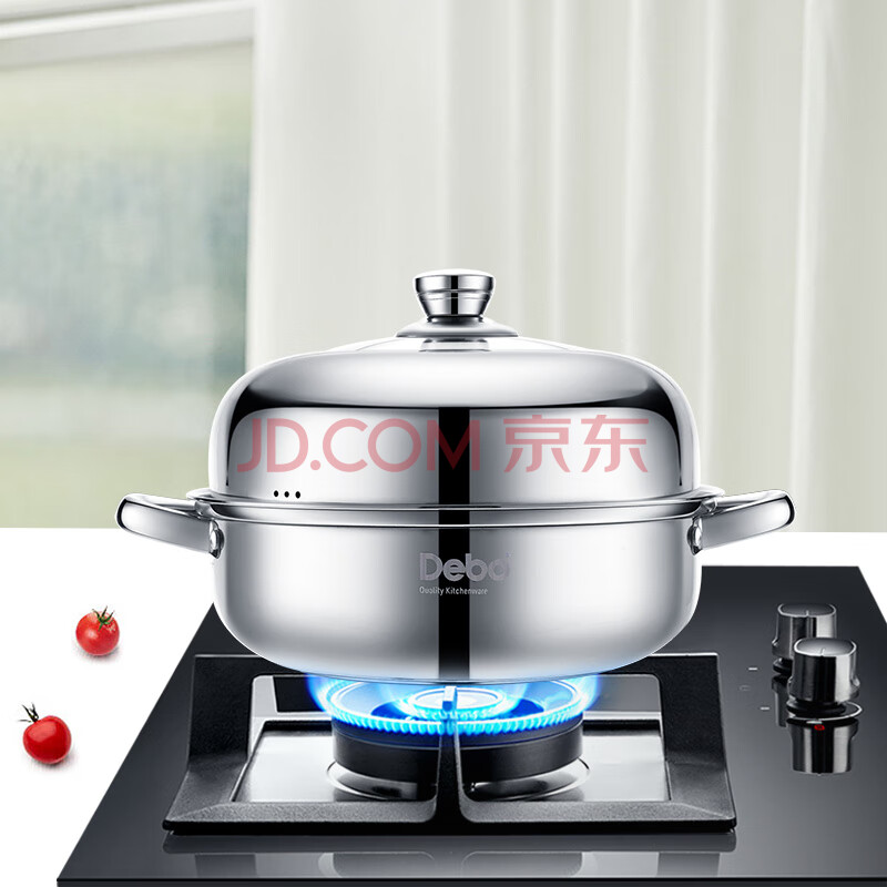 商品相册:Debo德铂汤锅不锈钢单层蒸锅蒸笼电磁炉两用锅艾琳诺26cm第
