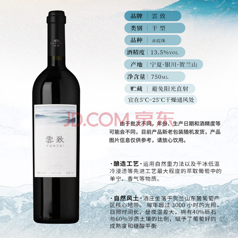 商品相册:云致国产红酒100%赤霞珠干红葡萄酒 750ml单支 宁夏红酒 送礼第