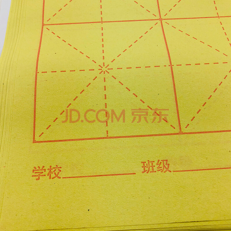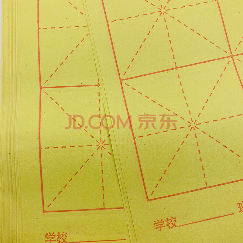 商品相册:芬尚 加厚八开15格毛边纸 学生毛笔书法课堂练习用米格纸黄色书法纸格宽6.8cm/36张 36*25cm第