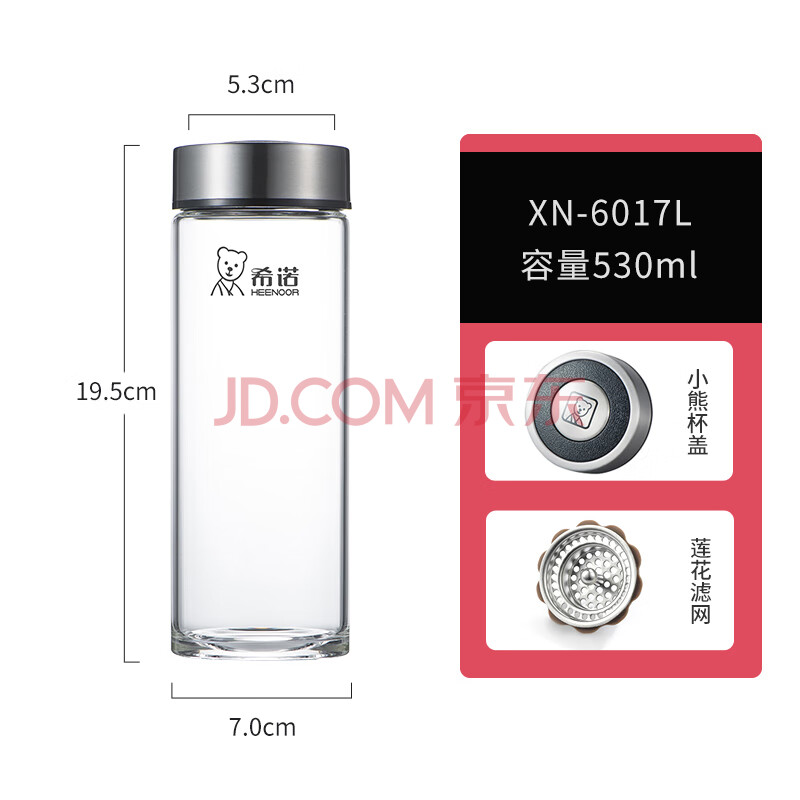 商品相册:希诺玻璃杯单层加厚大容量家用办公泡茶杯子男车载水杯XN-6017L 530mL第
