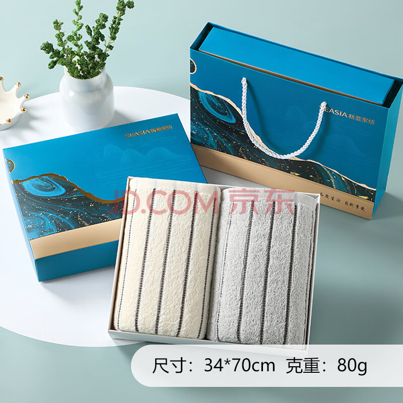 商品相册:新亚毛巾礼盒山海观纯棉毛巾2条礼公司团购福利商务伴手礼含手提袋第