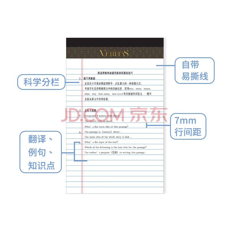 商品相册:凯萨(KAISA)美式拍纸本A5笔记本 加厚可撕上翻记事本分栏单词本50张3本装第