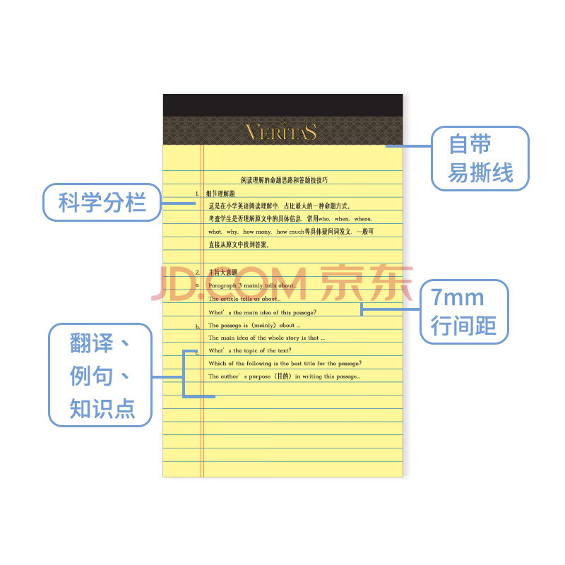 商品相册:凯萨(KAISA)【全网热卖】VERITAS加厚拍纸本美式A5/50张上翻笔记本黄纸横线本高颜值可撕草稿本记事本3本装第1张/共7
