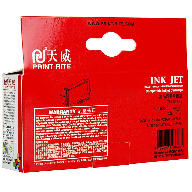 商品相册:天威 CLI851XL黄色墨盒 适用佳能Canon IP7280 8780 IX6880 6780 MX928 728 MG5480 5580 6380打印机 850墨盒第