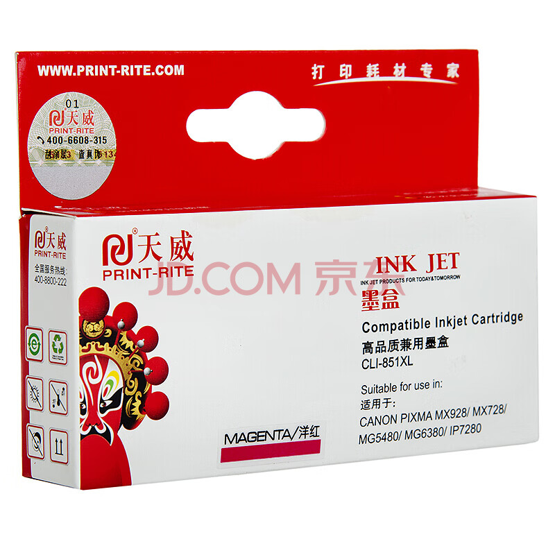 商品相册:天威 CLI851XL红色墨盒 适用佳能Canon MX928 MX728 MG5680 6400 7580 IP7280 IX6780 IX6880打印机 850墨盒第