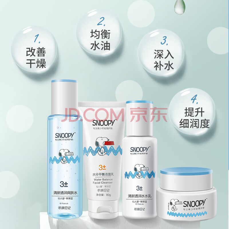 商品相册:SNOOPY史努比青少年护肤品套装洁面水乳面霜初高中学生青春期男女保湿第