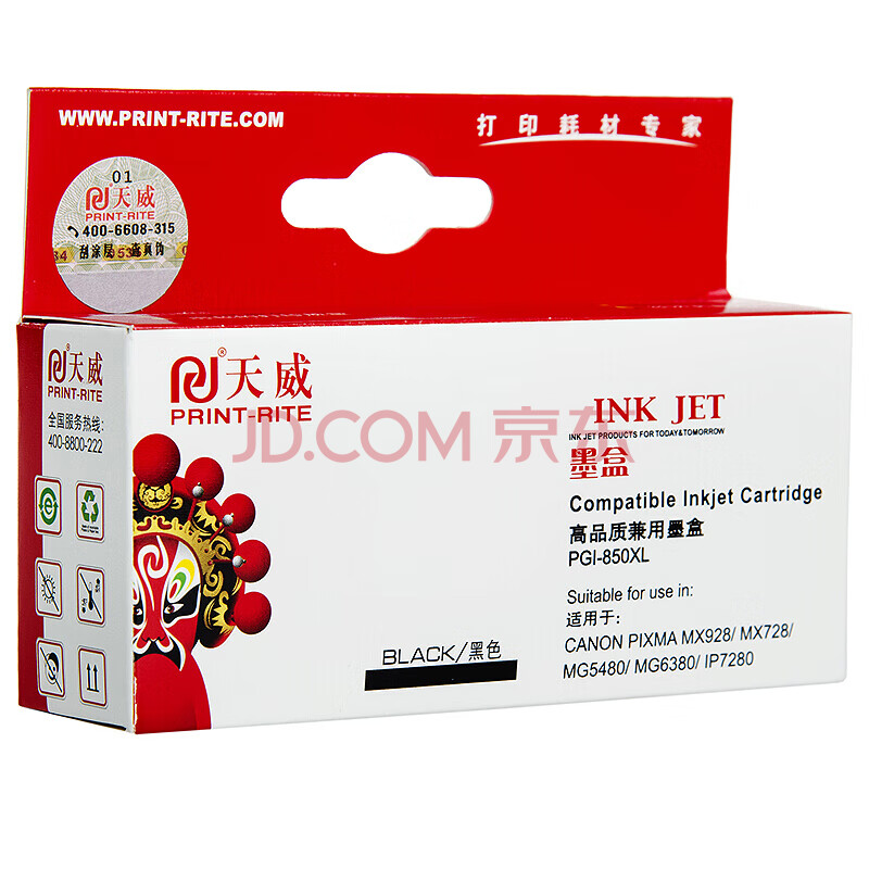 商品相册:天威 PGI850XL墨盒黑色 适用佳能Canon IX6880 IX6780 MX928 MG6400 IP7280 MG7180 打印机 850墨盒大黑第