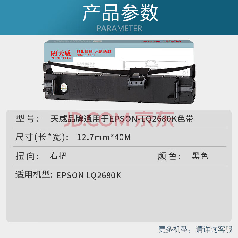 商品相册:天威 LQ2680K色带 适用爱普生EPSON LQ-2680K S015510 打印机色带架 (含色带芯)第