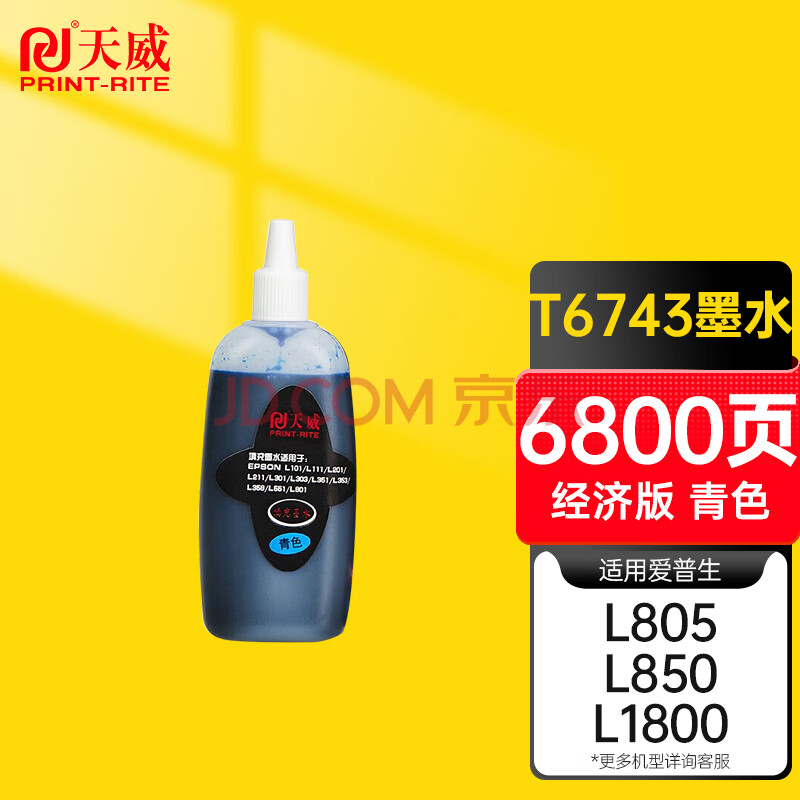 商品相册:天威 T6742青色墨水80ml 适用爱普生EPSON L805 L1800 L850 L801 L351 L301 L360 L800 L485打印机 674墨水第
