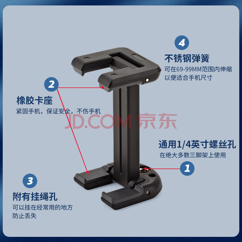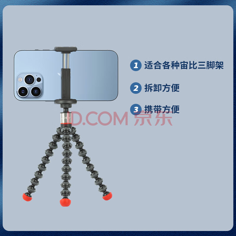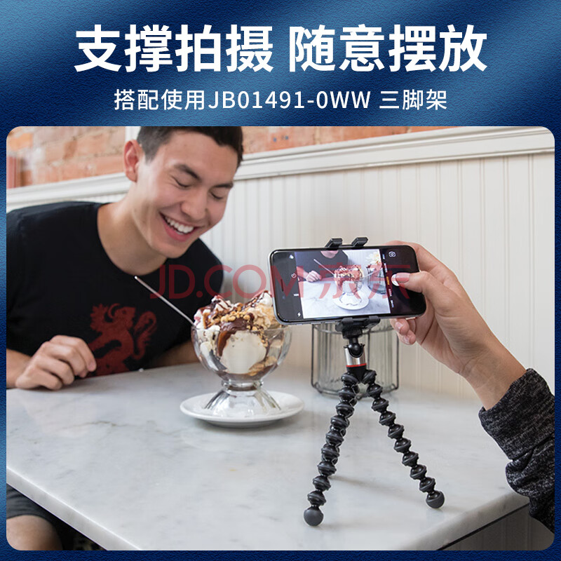 商品相册:宙比(JOBY)JB01490-0WW 通用小型手机夹三脚架支架自拍杆配件 (黑色)第