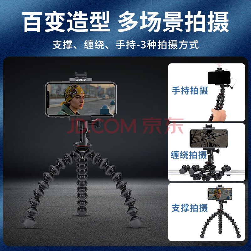 商品相册:宙比(JOBY)JB01551-BWW 多功能便携式八爪鱼三脚架套装户外直播摄影摄像拍照手机自拍杆桌面直播vlog支架带夹第