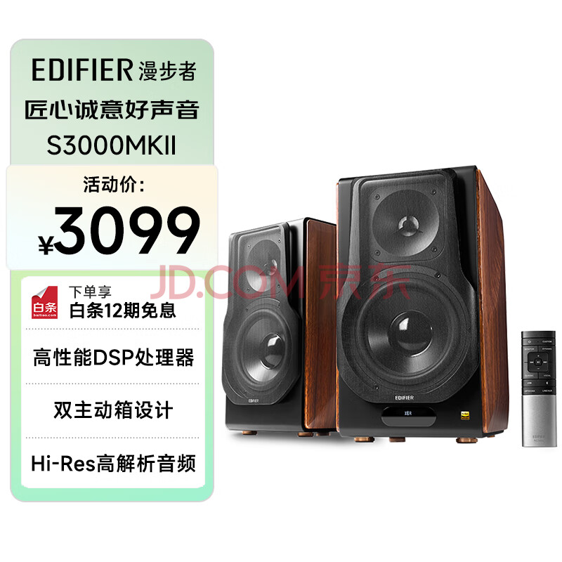 商品相册:漫步者(EDIFIER)S3000MKII 无线HiFi有源音箱 书架音箱 蓝牙音箱 电脑音箱 电视音响2.0第