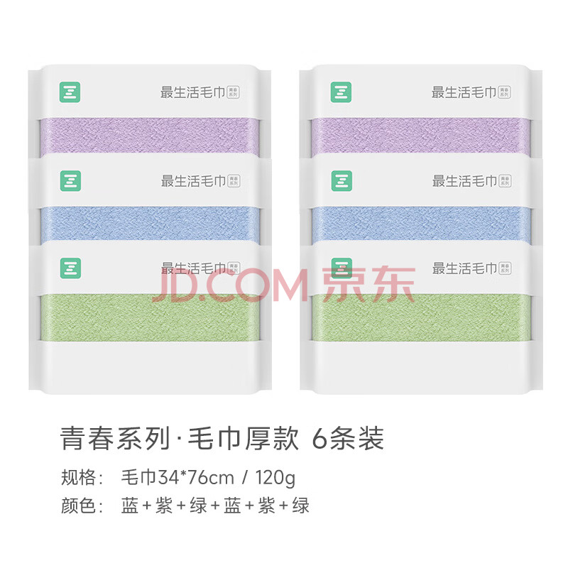 商品相册:最生活密封毛巾纯棉加厚6条装 新疆长绒棉A类洗脸洗澡毛巾吸水洗面巾第