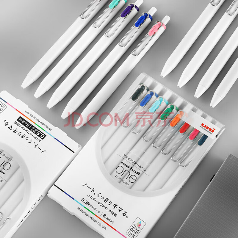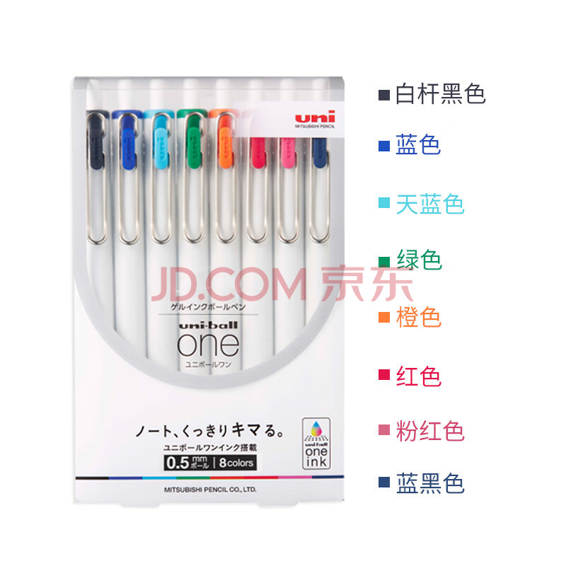 商品相册:uni三菱 UMN-S-05小浓芯按动中性笔 uni-ball one系列0.5mm签字笔 8色套装第