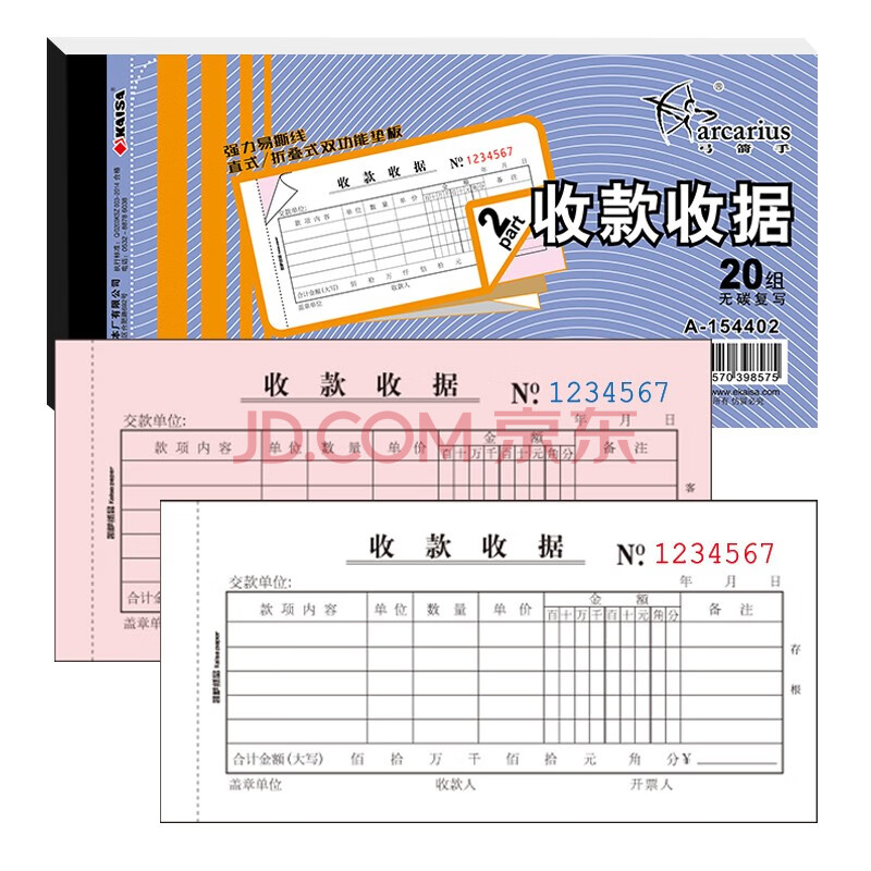 商品相册:凯萨(KAISA)54K/二联收款收据 两联20组无碳复写财会单据手写打印票据 (173×85mm) 10本 A-154402第