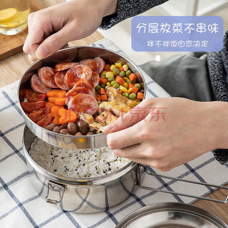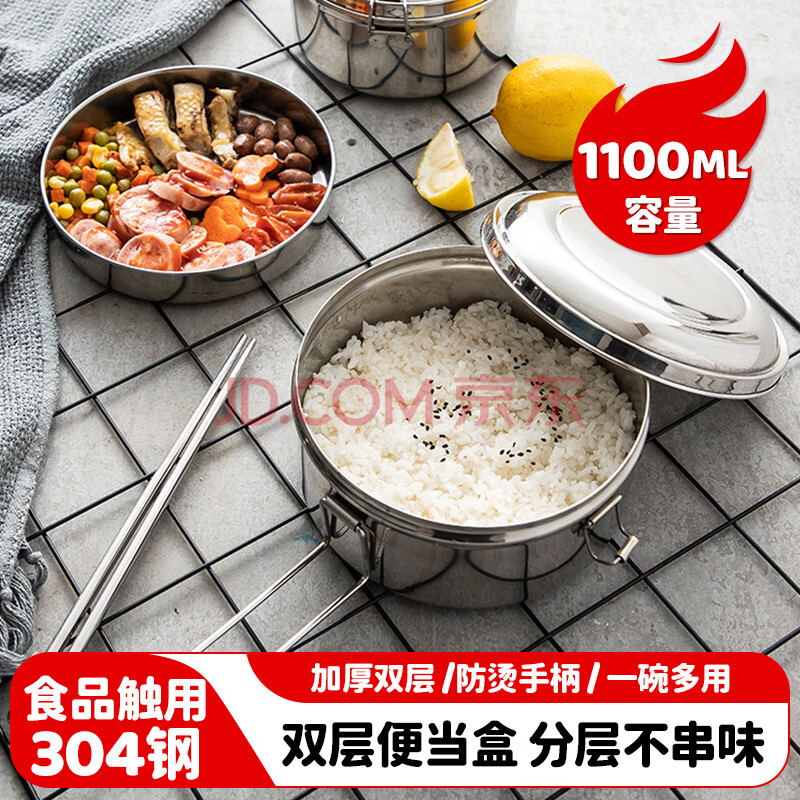 商品相册:美厨(maxcook)饭盒餐盒便当盒 304不锈钢加厚双层学生15.5cm 带提手MCFT5336第