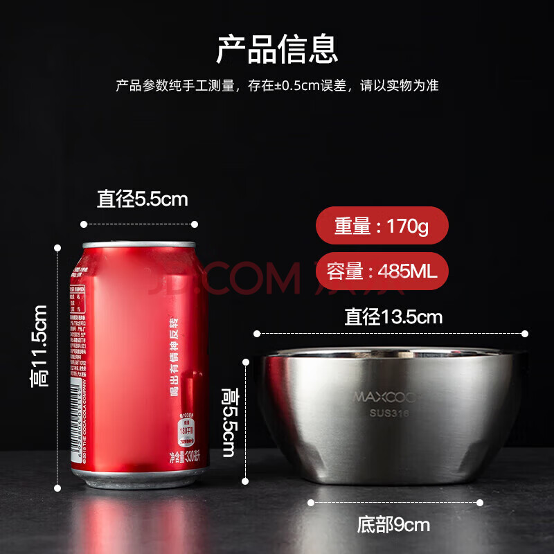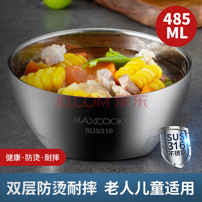 商品相册:美厨(maxcook)316不锈钢碗 汤碗双层隔热 餐具面碗13.5cm MCFT6128第1张/共9