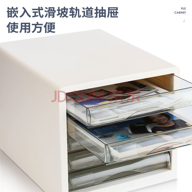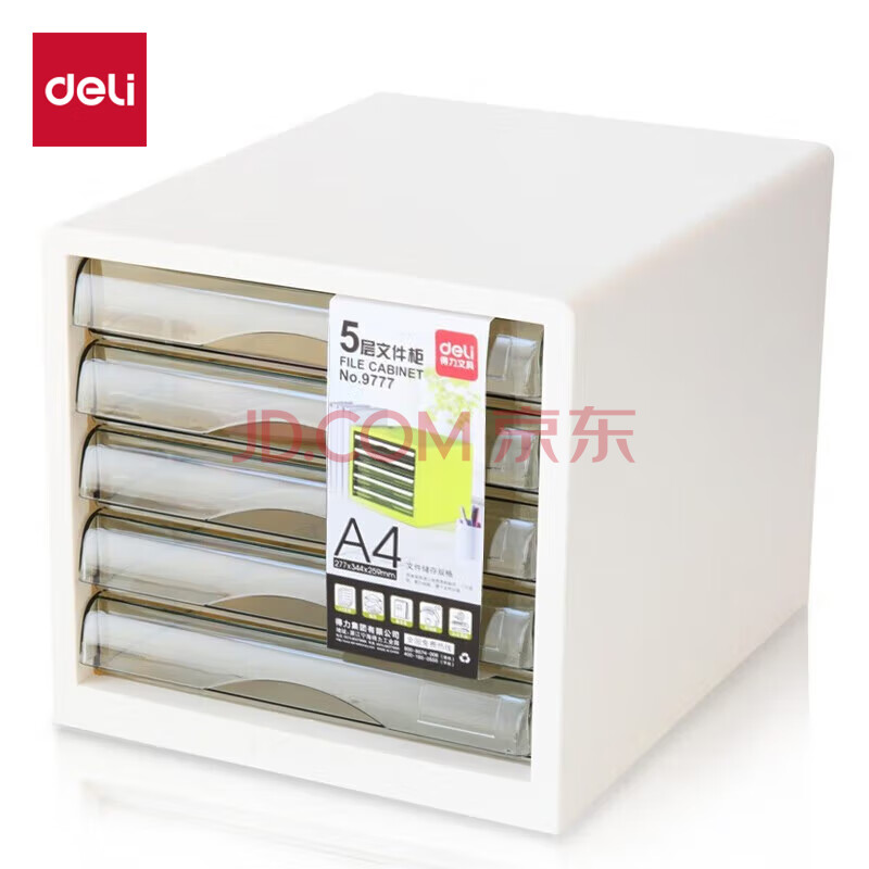 商品相册:得力(deli)5层彩色时尚办公桌书桌桌面收纳盒文件收纳柜抽屉式 A4资料/档案柜带索引标签学科试卷分类象牙白第
