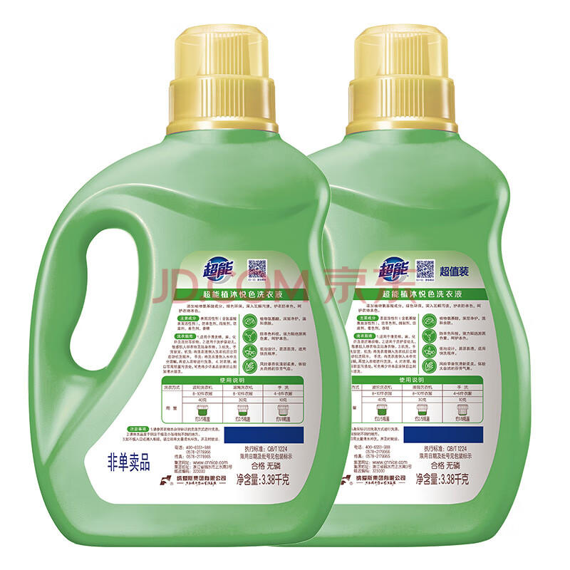 商品相册:超能 植沐悦色洗衣液 绿色风铃草 3.38kg*2瓶 植物氨基酸 护衣防串色第