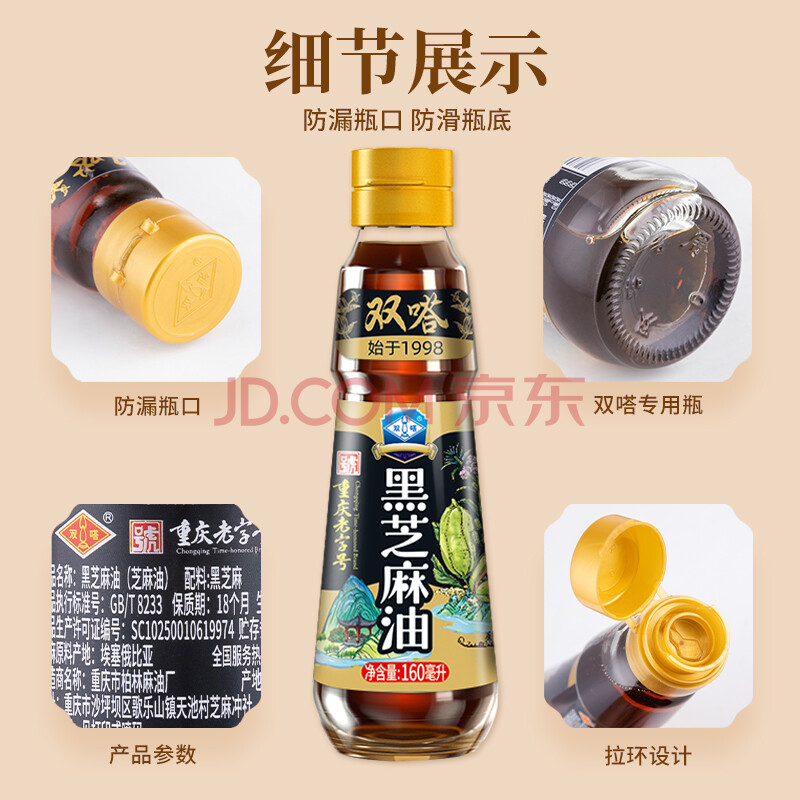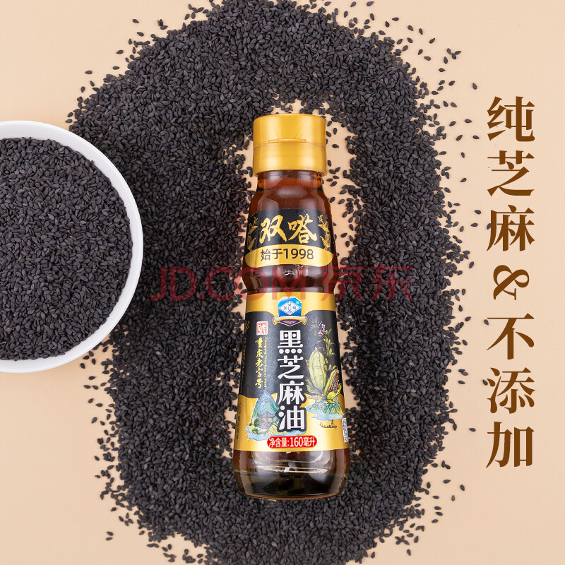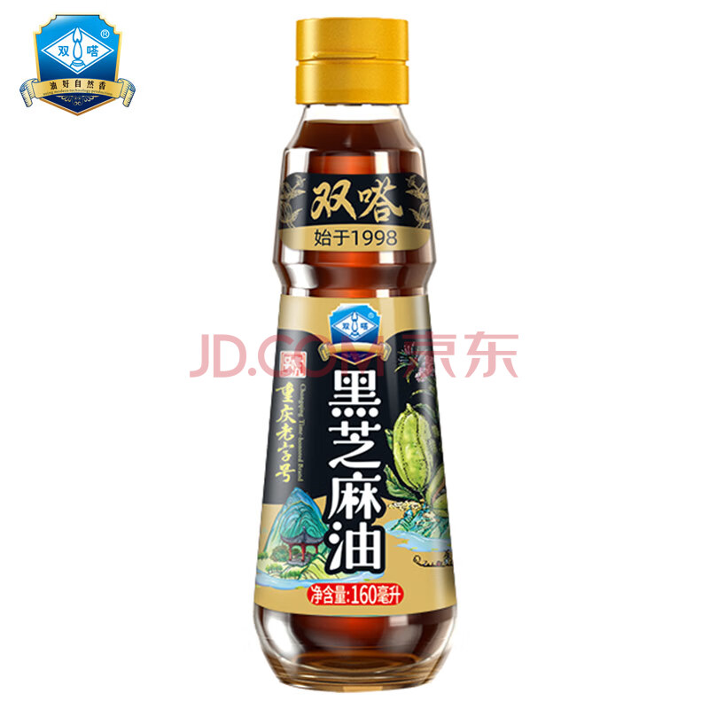 商品相册:双嗒黑芝麻油香油 芝麻油 物理压榨 重庆老字号 160ml 玻璃瓶装第