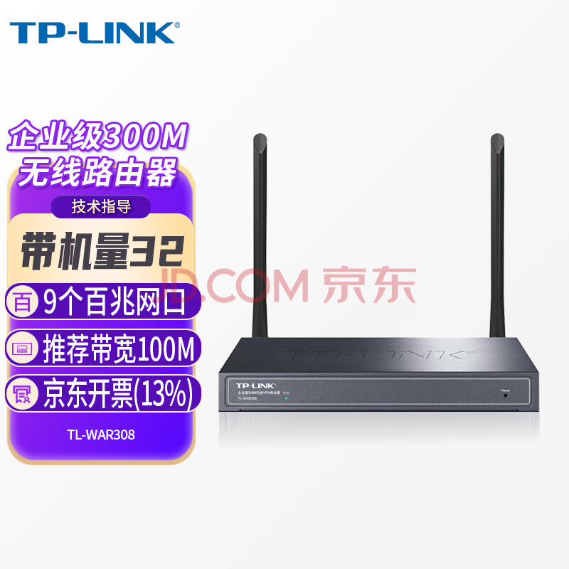 商品相册:普联(TP-LINK)企业级9口无线路由器多WAN口支持多拨接双宽带叠加WiFi网络可穿墙百兆端口办公室用TL-WAR308第