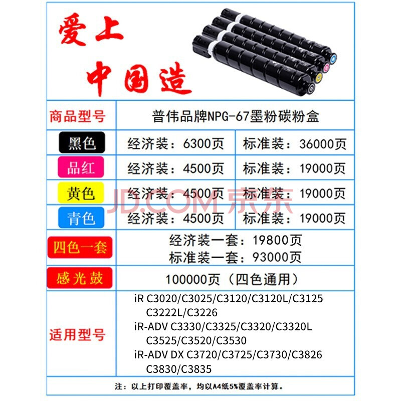 商品相册:普伟NPG-67墨粉盒适用佳能复印机硒鼓C3826/C3720/C3520/C3320/C3120L/3125/C3222L/C3226碳粉盒第