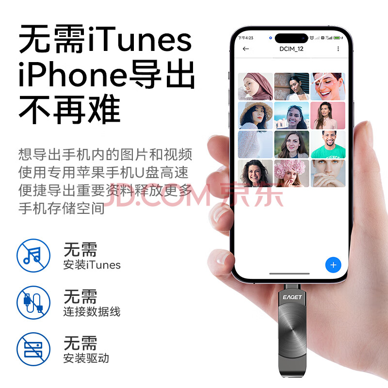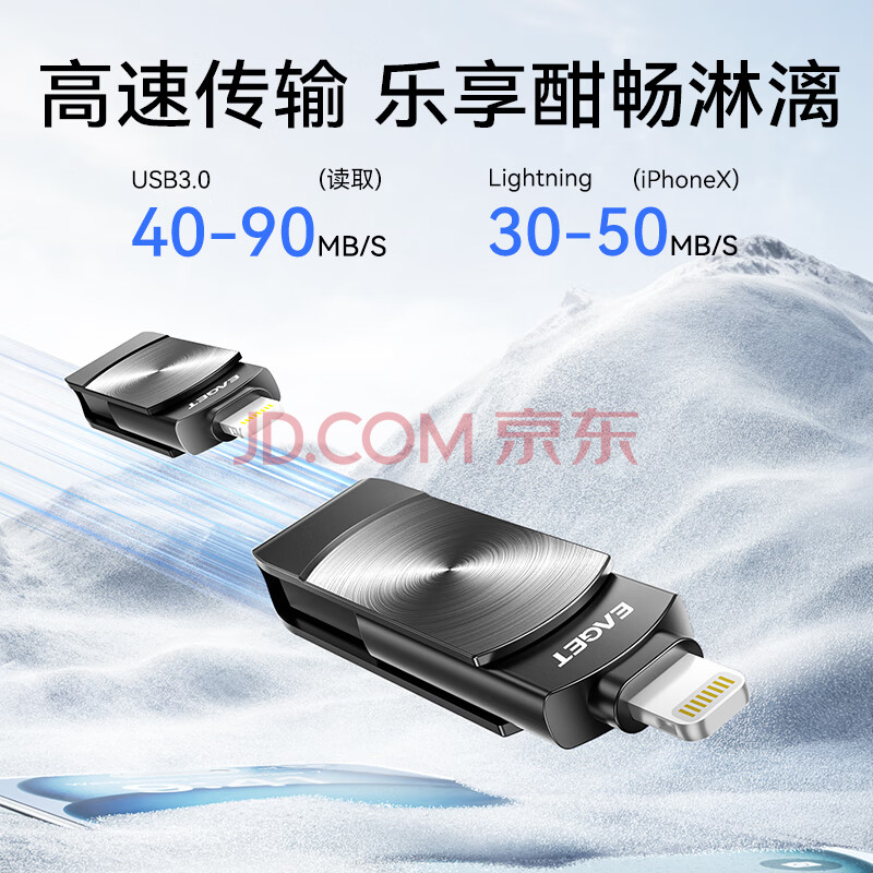 商品相册:忆捷(EAGET)256GB Lightning USB3.0苹果手机U盘 i66官方MFI认证一键备份iphone/ipad扩容电脑笔记本两用优盘第