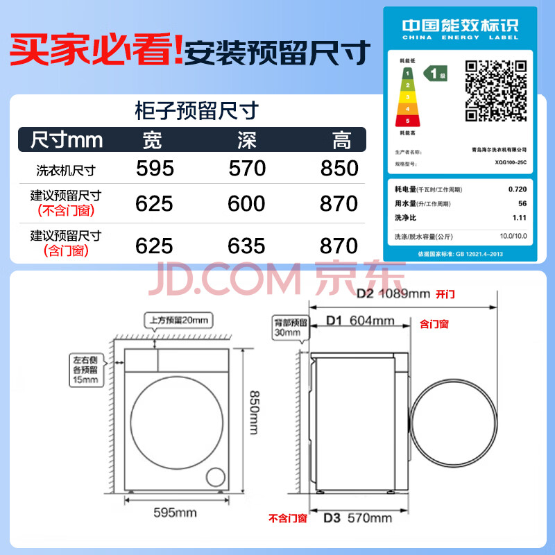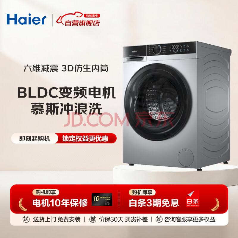 商品相册:海尔滚筒洗衣机全自动10KG 新品上市 一级变频 超薄嵌入 1.11洗净比 AI减震 冲浪洗 双喷淋XQG100-25C第